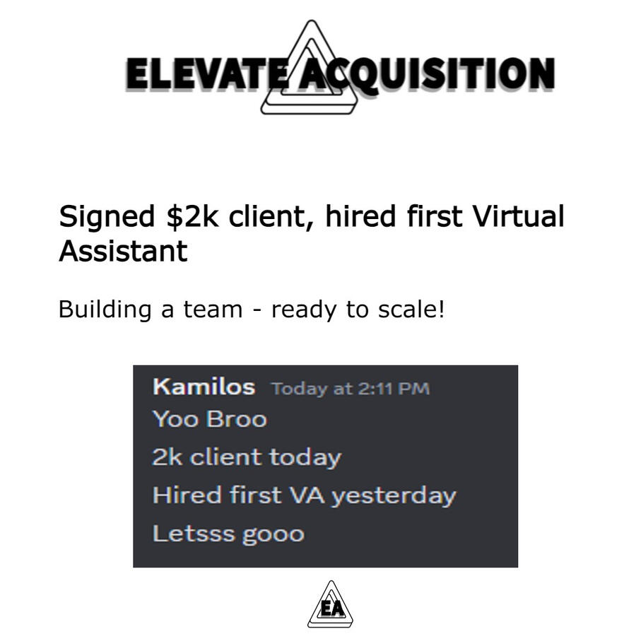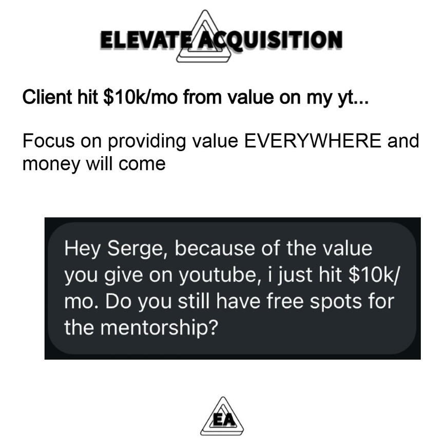 He couldn't get consistent clients without her direct input, that is why we built an ecosystem for generating clients. Right now Giuseppe closed over $100k in deals.