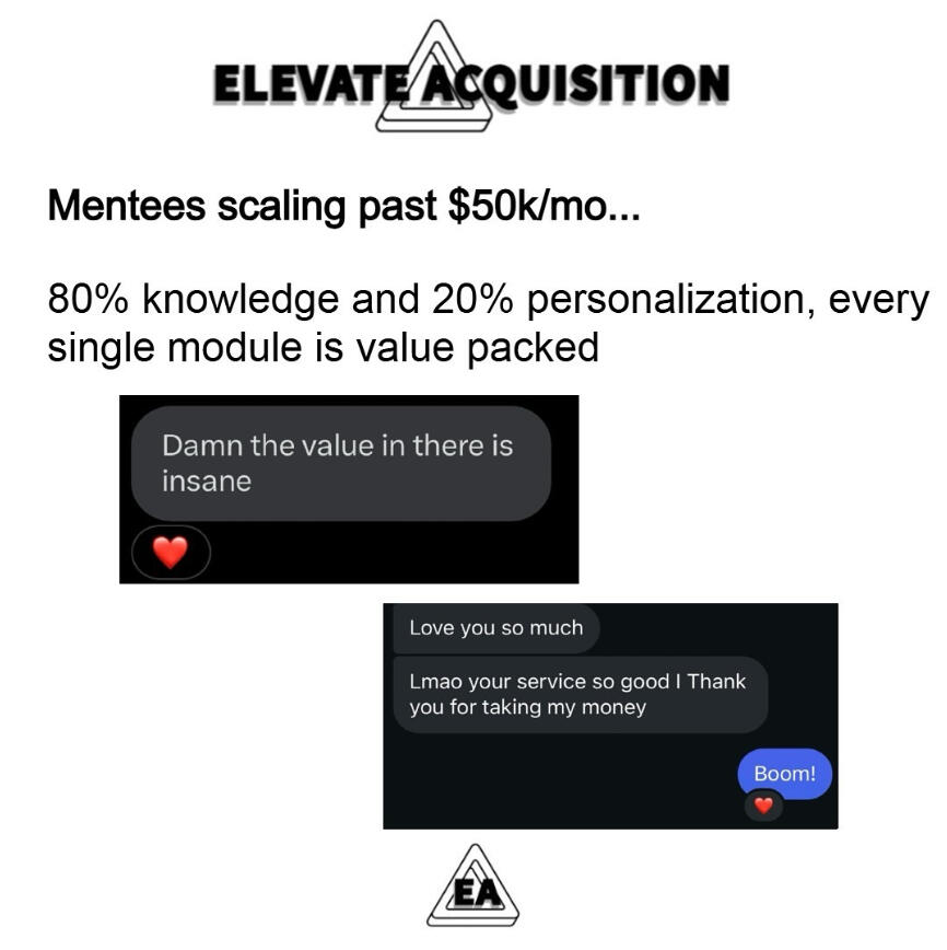 She went from not having any clients at all to daily appointments utilizing our proven acquisition system. Hit $20k in 60 days after pulling the trigger with me.